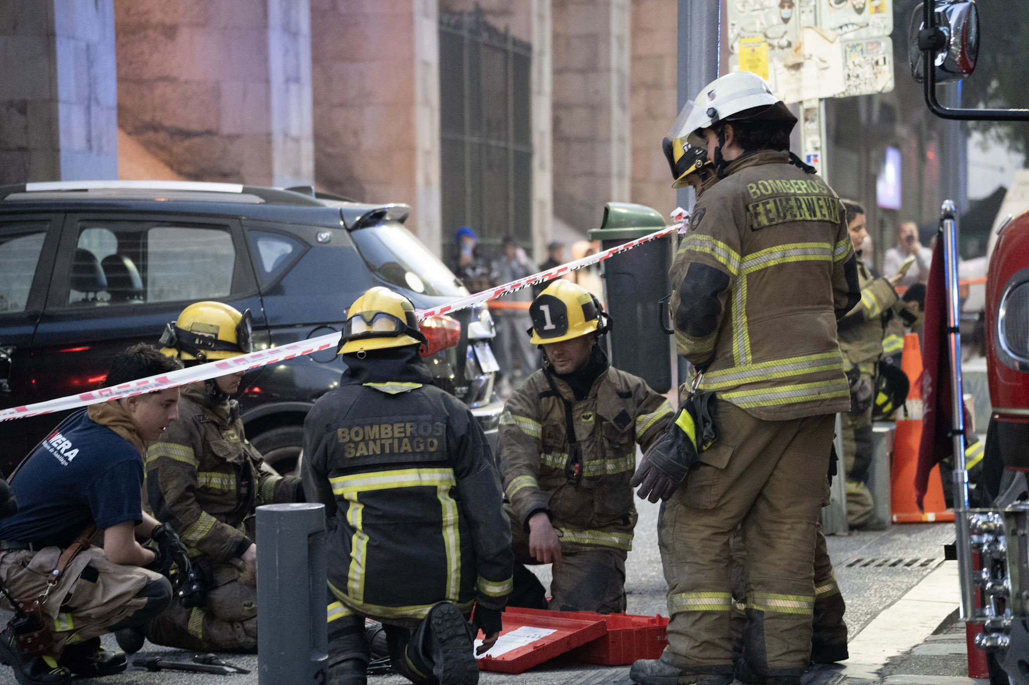 A las 13:20hrs del pasado jueves 10 de julio, la central de alarmas de la institución despacha unidades por emanación de humo desde edificio, con personas en el interior, en las intersecciones de Monjitas y 21 de Mayo, en el casco histórico de la comuna de Santiago, donde, posterior a una evaluación de la gran magnitud de la emergencia, escala hasta una tercera alarma de incendio.