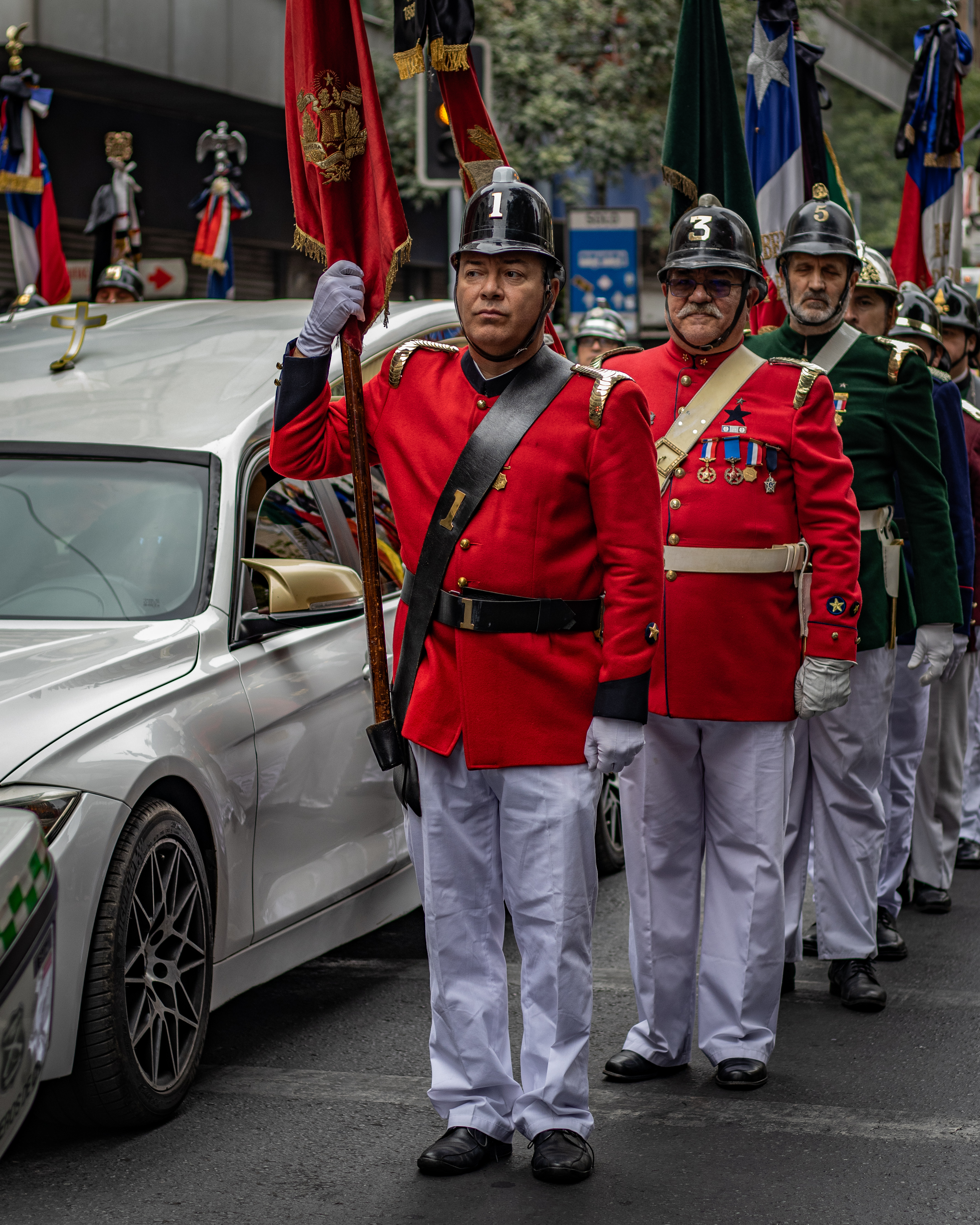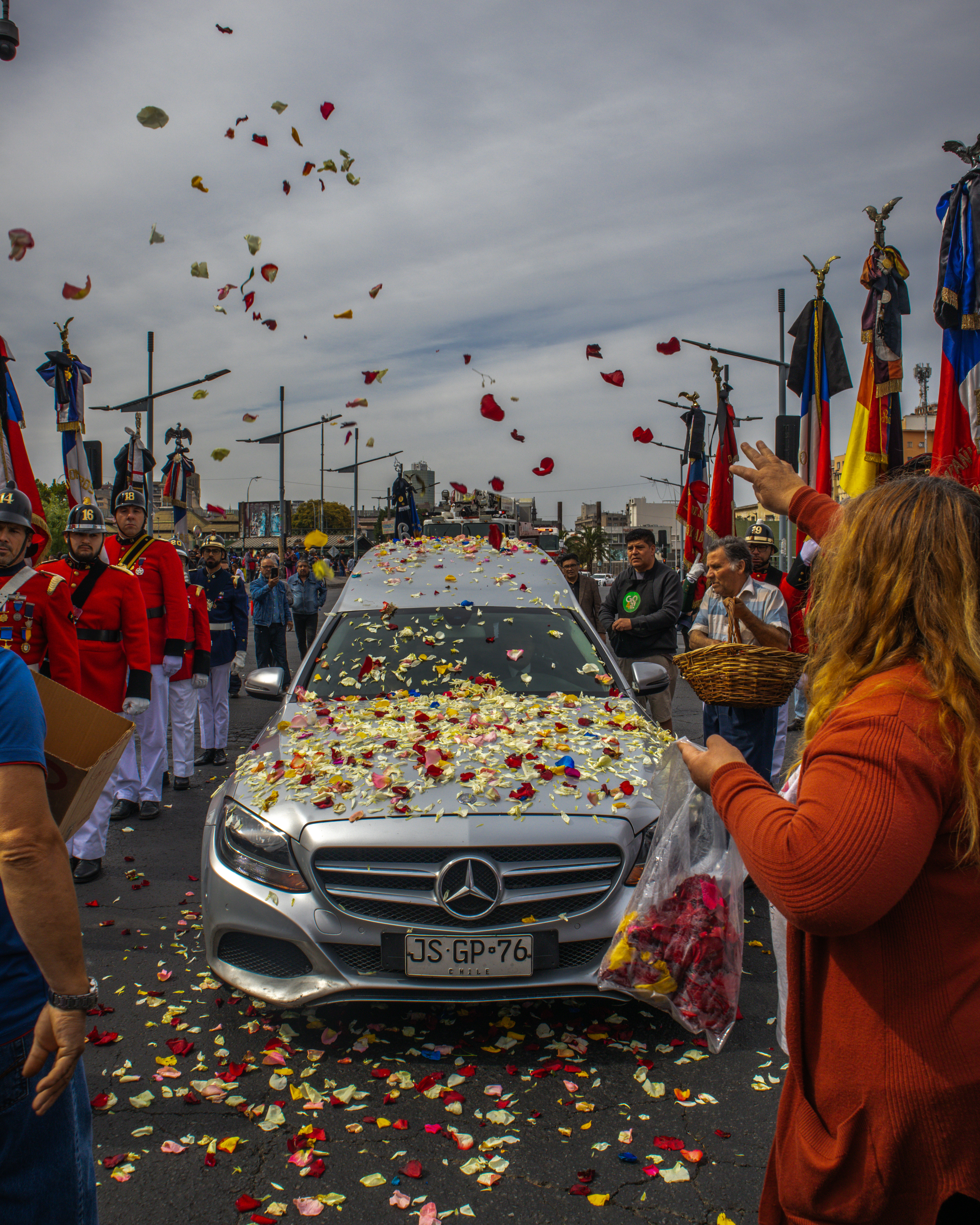 Ya en el lugar de destino, entre flores, ruidos de pasos, las autoridades bomberiles izaron la urna y, junto a la familia doliente, ingresaron al sagrado recinto que guarda la memoria de los Bomberos de Santiago.