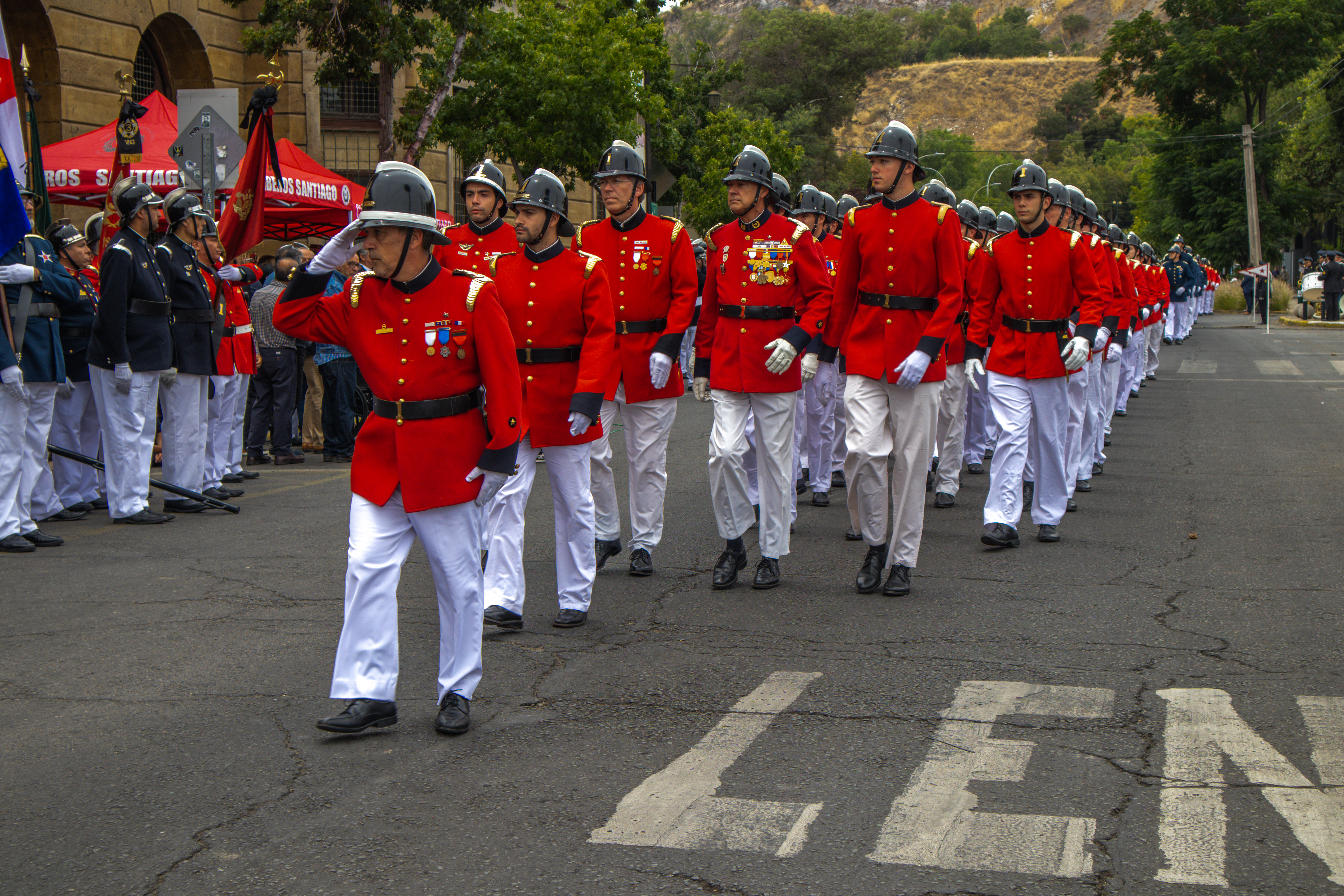 Hacia allá marcharon los Oficiales Generales, los estandartes enlutados, la 6ª Compañía tirando la cureña antecedida por la familia doliente, especialmente hacia el Mausoleo Institucional, la última morada de quien fue Paul Cristoffer Valenzuela Muñoz (Q.E.P.D.) ahora 5° Mártir de los “Salvadores y Guardia de Propiedad”, 50° Mártir del Cuerpo de Bomberos de Santiago.